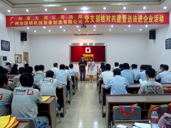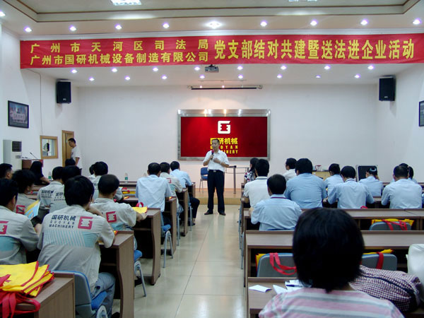 9月7日下午,广州市天河区司法局党支部和文教工作队一行18人在局长罗育辉和副局长曾晓云的带领下,来到广州市安博官方网站设备制造有限公司举行党支部结对共建暨送法进企业活动。